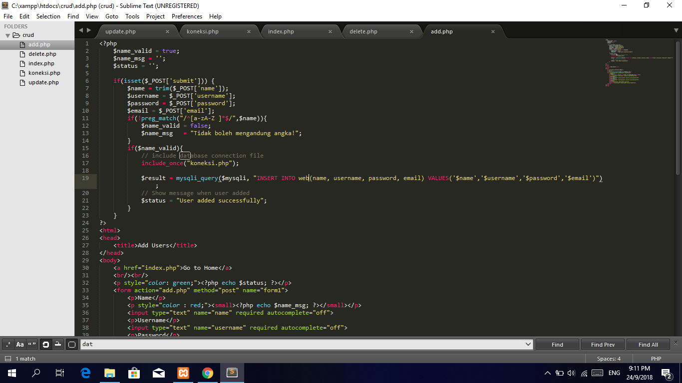 Langkah keempat membuat file add.php untuk membuat data seperti gambar dibawah ini.
